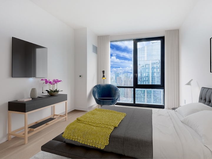 21 West End is the pioneer luxury rental building in Riverside Center. With striking views of the city skyline and Hudson River the residences offer a wide range of studio to three bedroom layouts designed by SLCE Architects. SLCE architects designed a range of layouts from studios to three-bedroom units all providing breathtaking views.