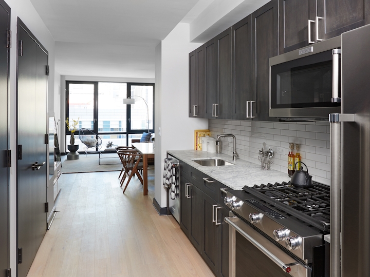 Welcome home to this. With striking views of the city skyline and Hudson River the residences offer a wide range of studio to three bedroom layouts designed by SLCE Architects.