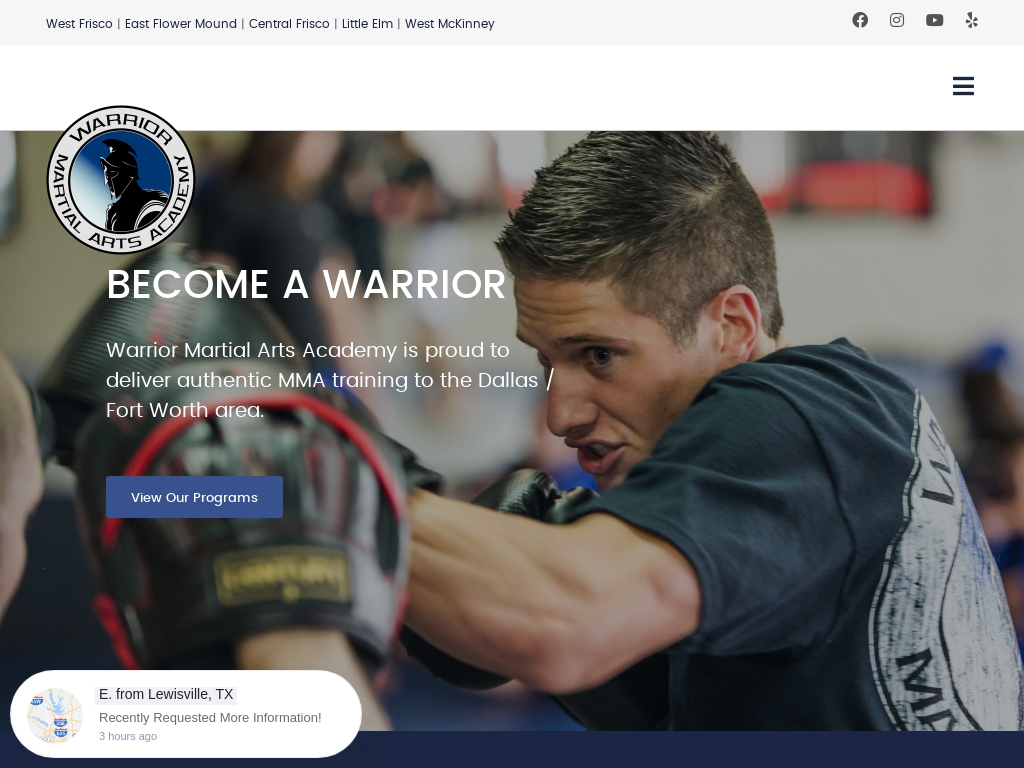 Warrior Martial Arts Academy provides world-class Mixed Martial Arts instruction for adults and kids including Kickboxing Taekwondo Muay Thai. Warrior martial arts little elm. 2833 Eldorado Parkway 303 Little Elm Texas 75033.